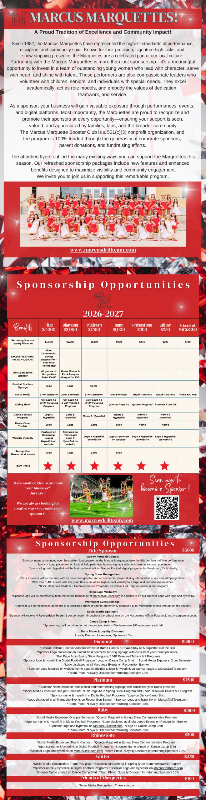 - Logo featured on Website Homepage in addition to Logo & Hyperlink on Sponsor Webpage at MarcusDrillTeam.com